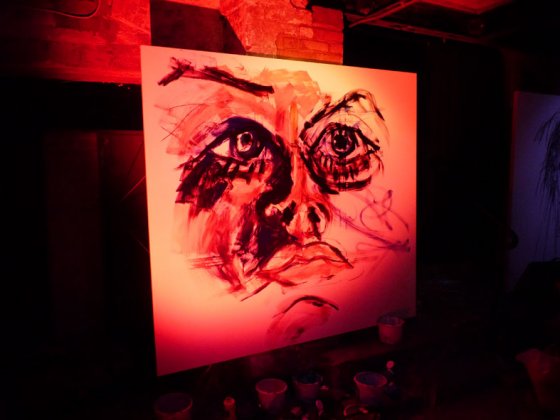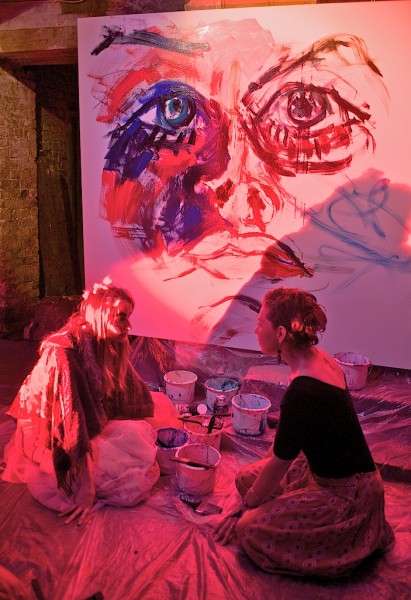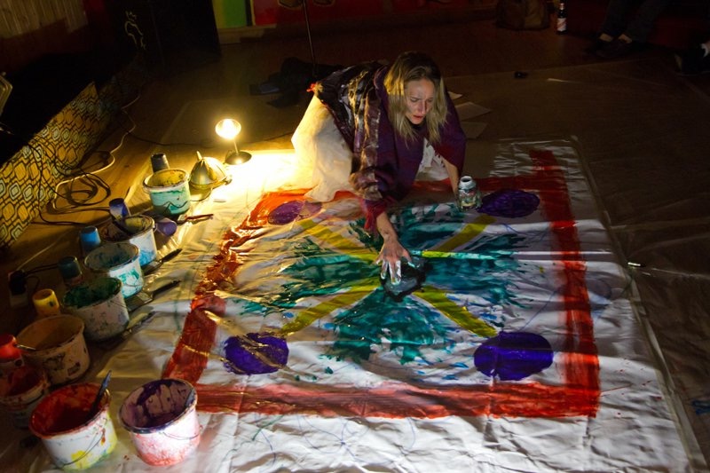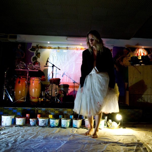 4 pots of paint, 3 cameras, 2 dancers, 1 sound track in a white space.