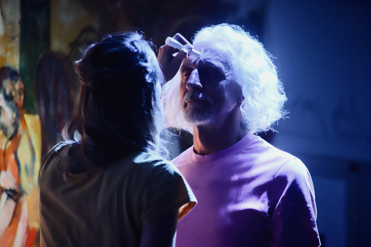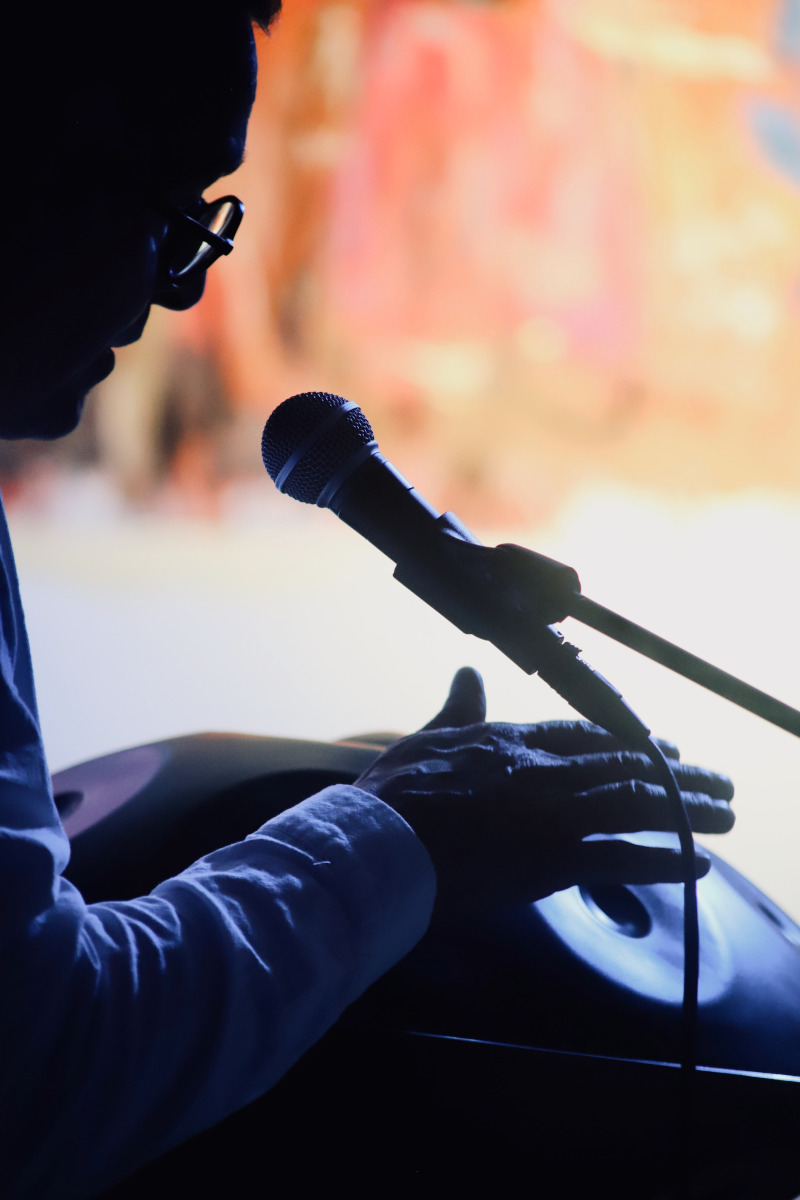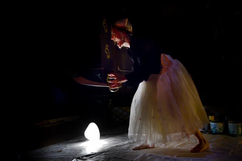 Pendant 11 minutes, les deux artistes se questionnent et se répondent sur deux tabourets, créant un espace où la dualité cherche à se souvenir de son unité originelle.