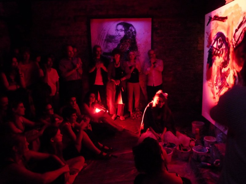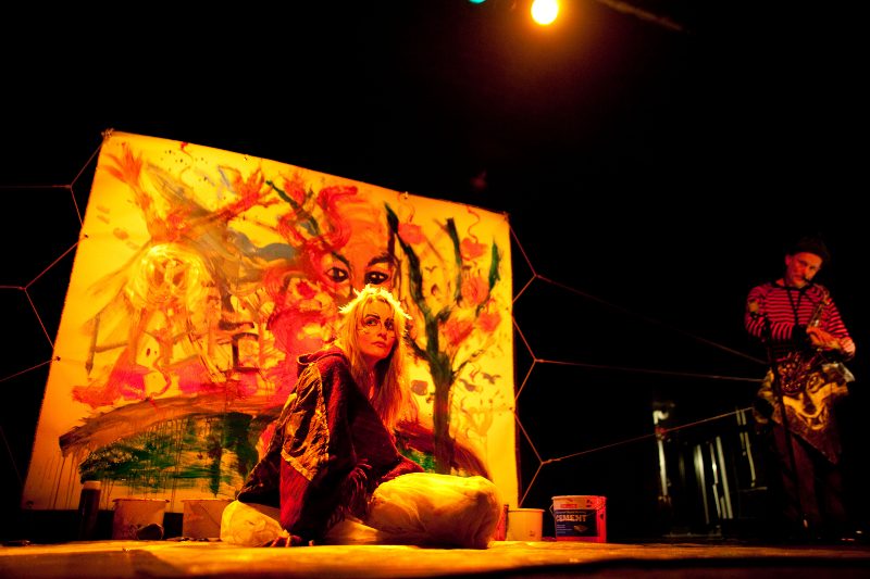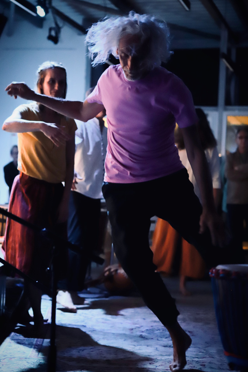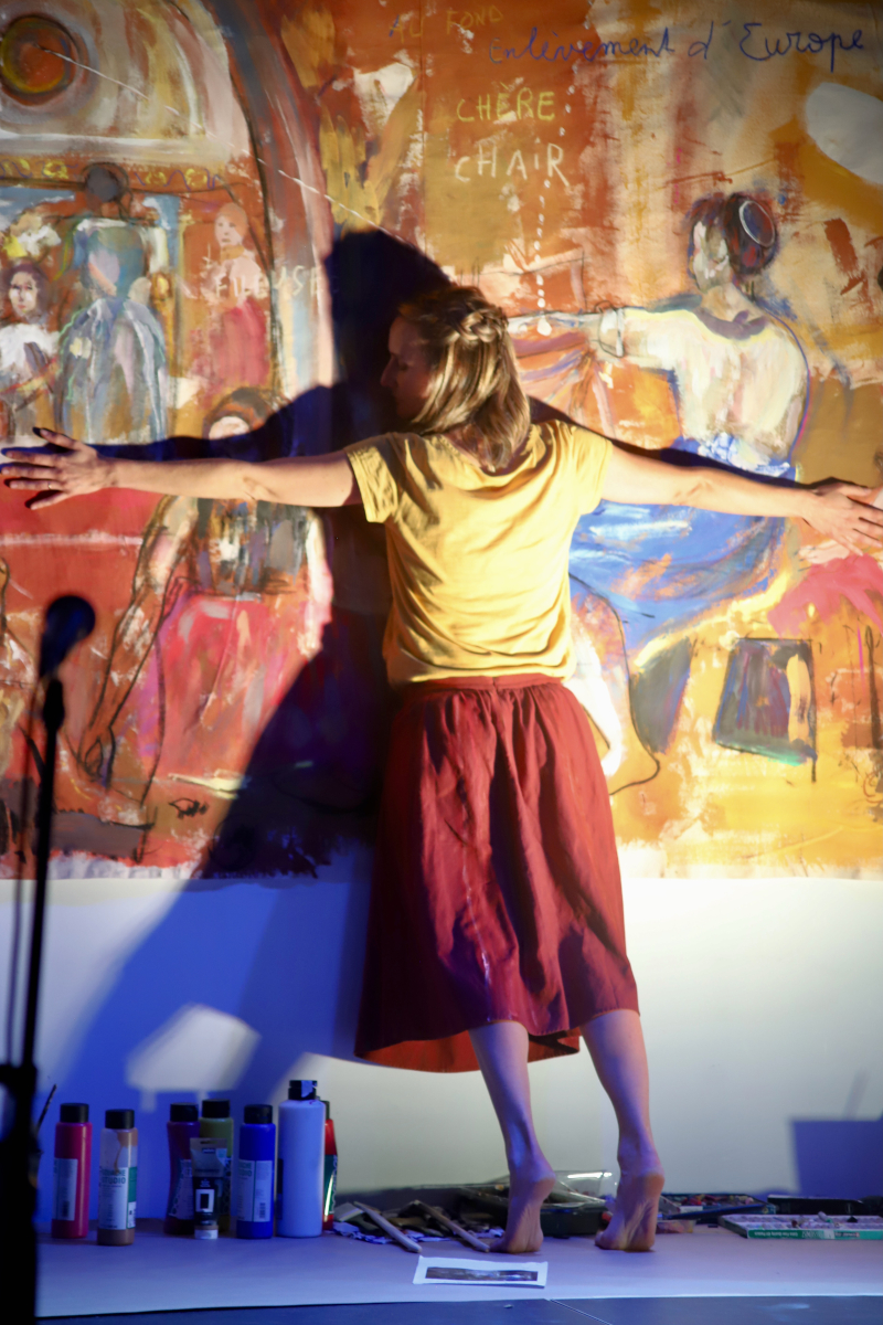 Improvisation son, mouvement et peinture suivant la structure: Unification / Découverte de l’autre / Séparation / Réunification.