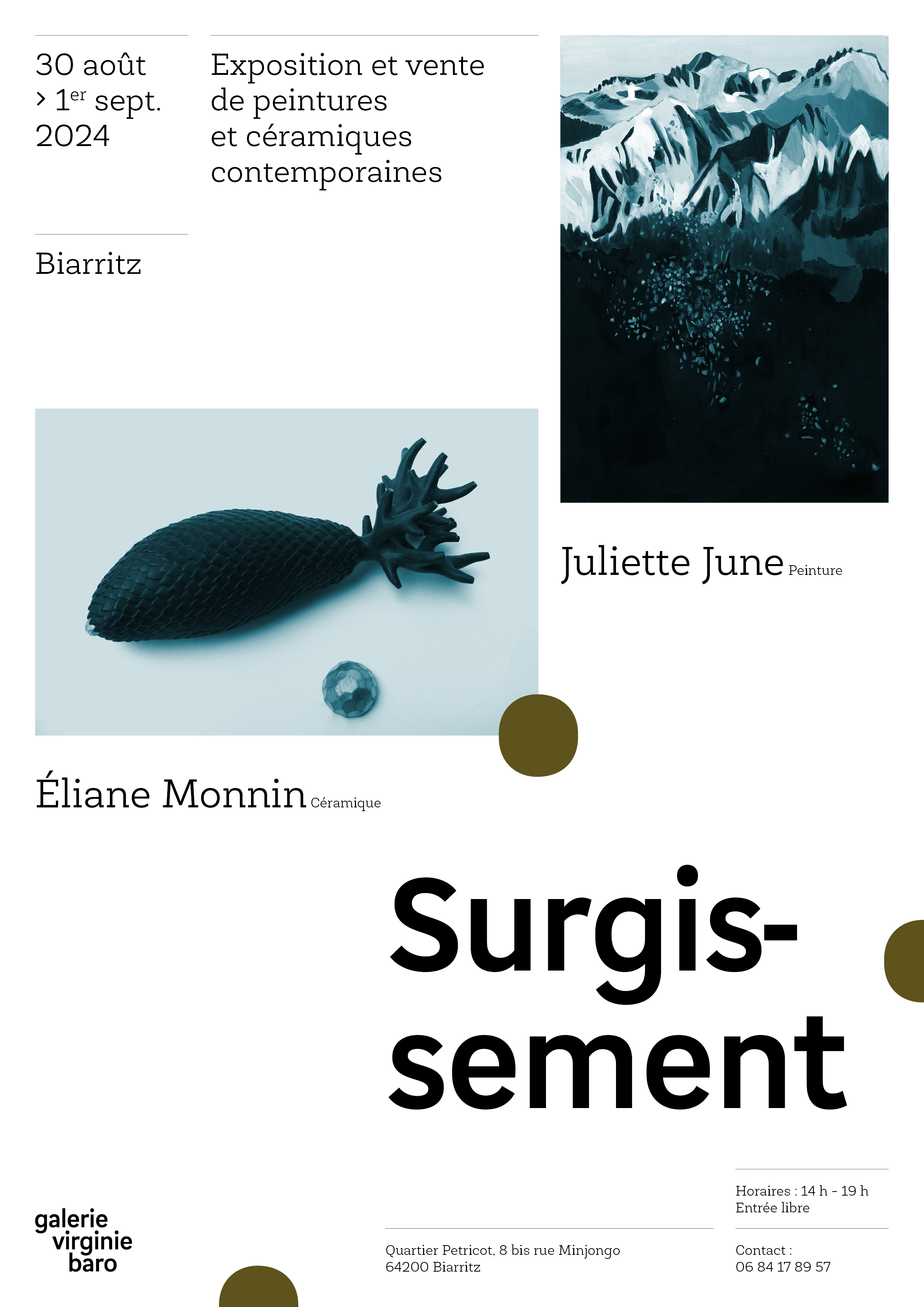 SURGISSEMENT• 30 août – 1er sept 2024 • En duo avec la céramiste Eliane Monnin • Galerie Virginie Baro • Biarritz chez Brigitte Darrigrand • Photos David Duchon-Doris