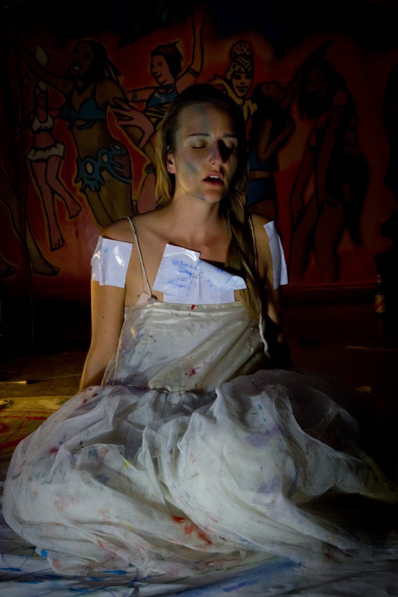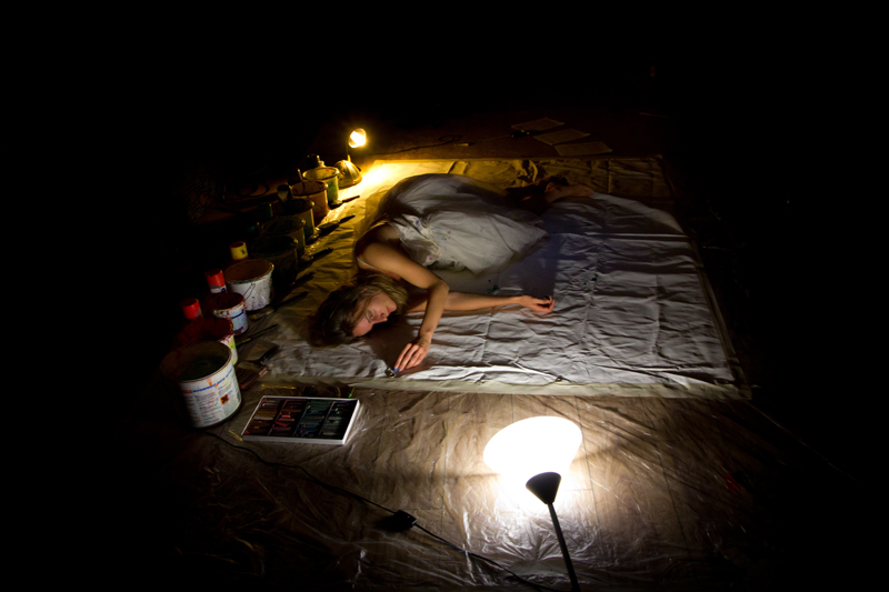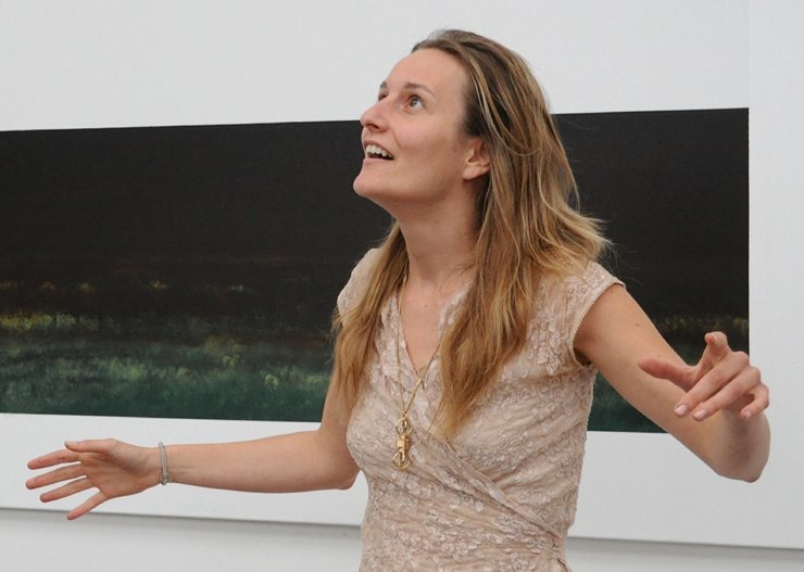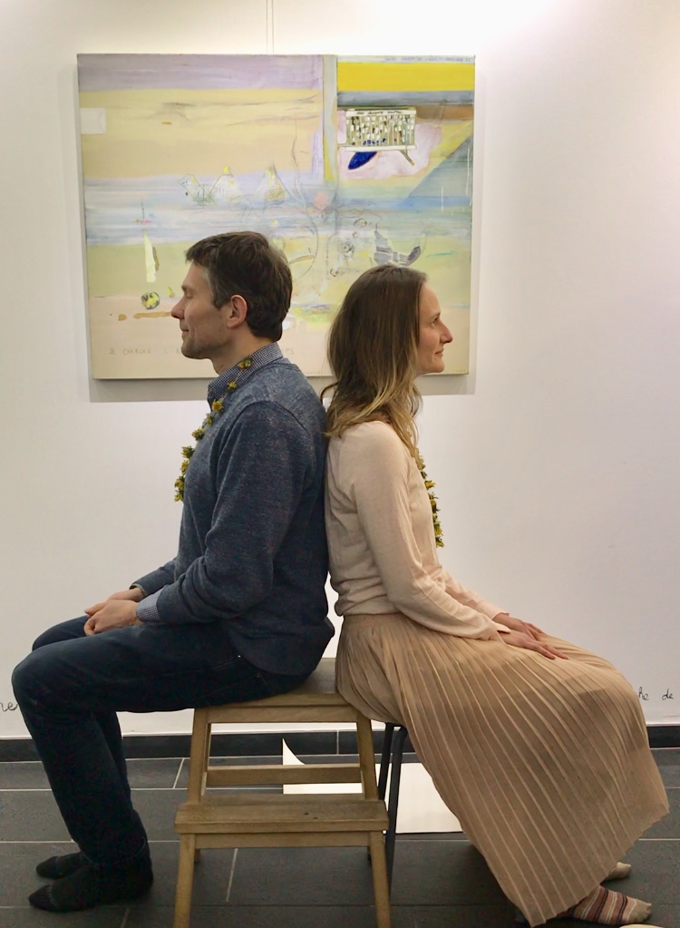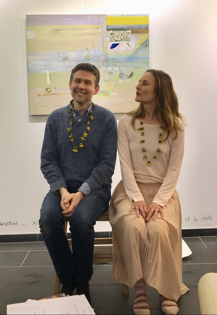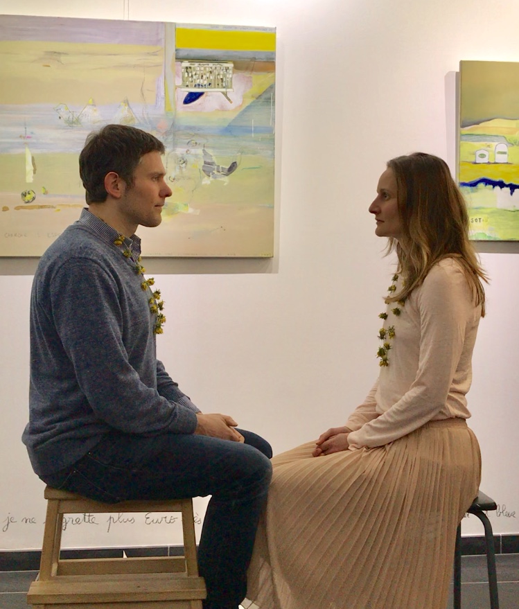 Depuis 2019, dans chaque lieu où elle expose, Juliette June réalise une performance à la fois inédite et récurrente dans sa forme. L’artiste commence par partager un ou deux poèmes écrits de façon concomitante à la création des peintures exposées puis engage l’auditoire à créer avec eux une nouvelle œuvre : après les avoir invités à se tenir debout et poser leur dos contre un grand papier préalablement peint, elle dessine au pastel gras le contour de leur corps qui de fait prend part à un paysage maintenant habité. La performance arrive en écho au travail exposé et ravive l’œuvre en une expérience présente.